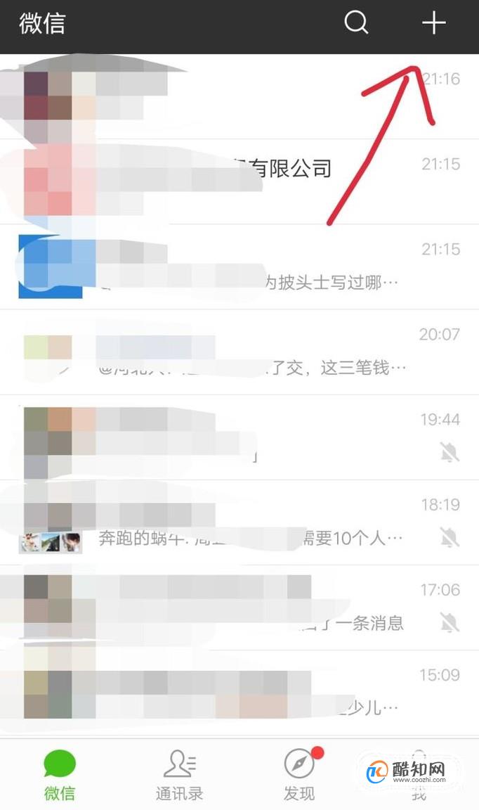 還有就是有小程序碼圖片的時候,我們可以打開微信,點擊右上角的“+”,如下圖。